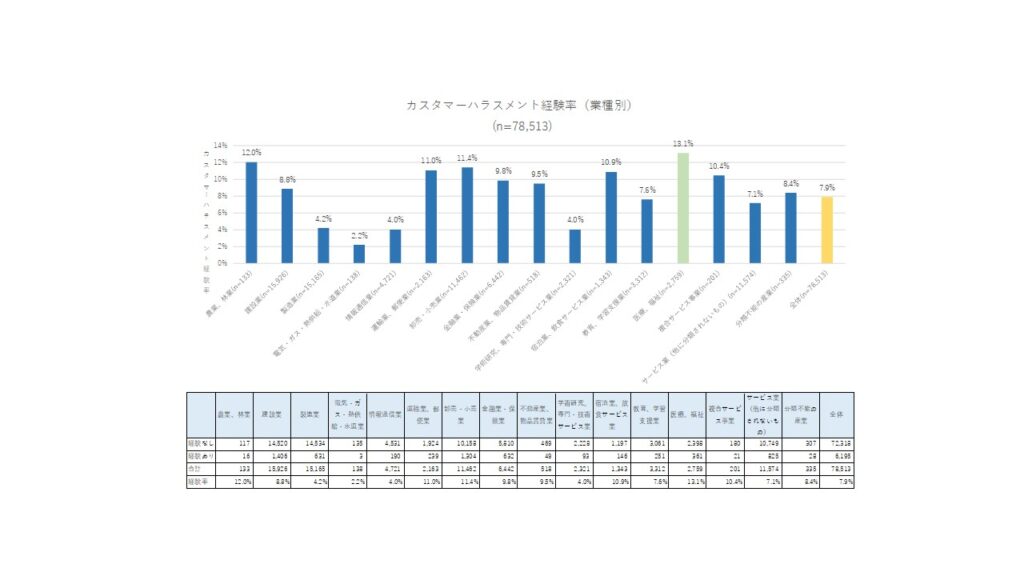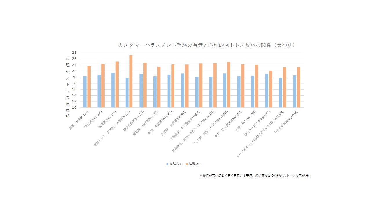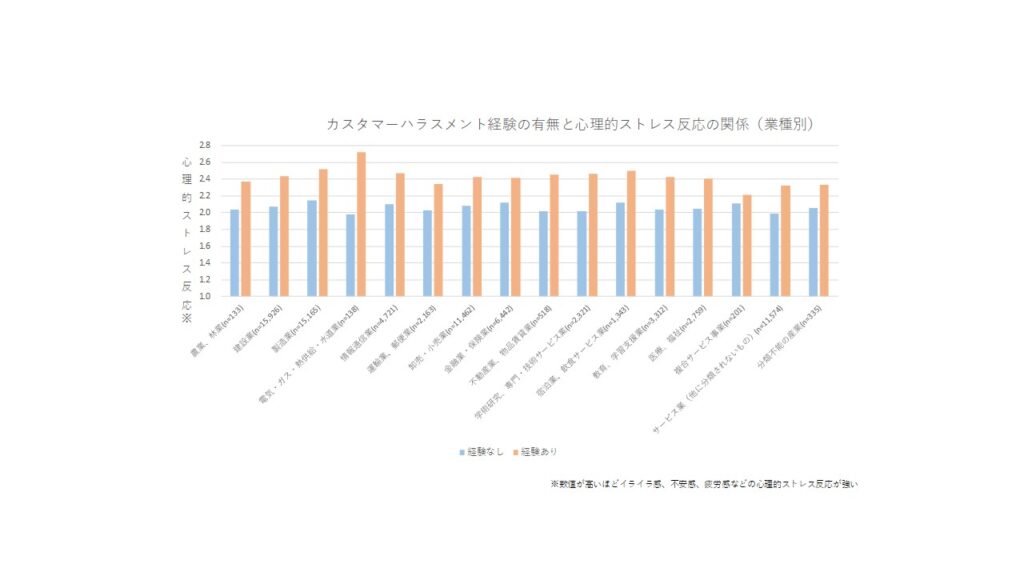 カスタマーハラスメント経験率と心理的ストレス反応の業種別分析(速報)