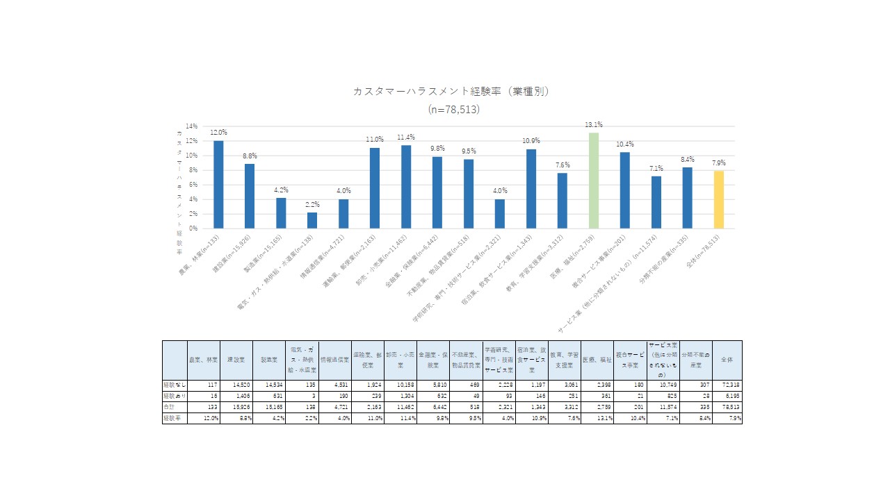 • カスタマーハラスメント経験率は回答者全体で 7.9%