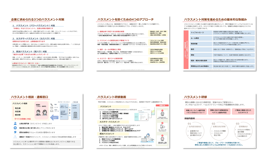 各種相談サービス(相談・通報窓口を含む)、研修サービス、ストレスチェックサービス、EAPサービス
