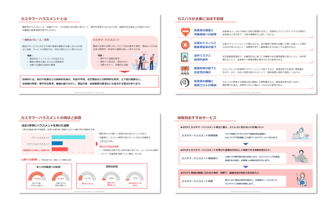 各種相談サービス(相談・通報窓口を含む)、研修サービス、ストレスチェックサービス、EAPサービス